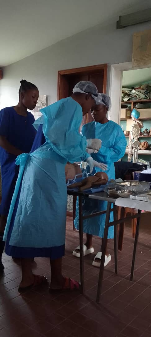 Utilisation de notre hub éducatif mobile (étendu) pour soutenir les enseignants et les étudiants dans le but d’enrichir et de développer davantage le programme d’enseignement. Le premier thème abordé était ‘les soins des plaies’, pour lequel une quarantaine d’ouvrages (rédigés par le professeur Ivo De Wever sur la base de son expertise locale à Kisantu !) ont été fournis en version papier et une version numérique de cet ouvrage de référence complet et de grande qualité a été installée sur quatre ordinateurs de bureau accessibles aux étudiants infirmiers. En outre, une vaste collection de matériel vidéo (Global Health Media) a été installée afin de visualiser de manière réaliste des soins infirmiers spécifiques sur différents thèmes.